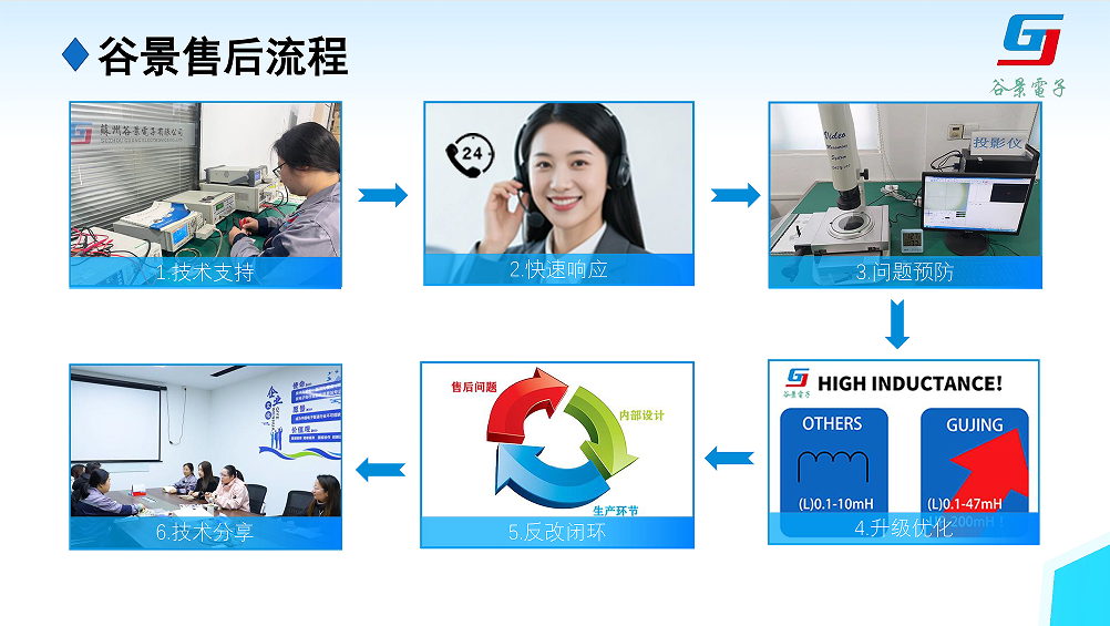 谷景專注電感制造與應用23年,深知電感與其他元器件是深度的“共生關(guān)系”,任何單一元件的孤立判斷都無法解決系統(tǒng)性問題。為此,我們建立了一套“先解決,后界定”的技術(shù)服務流程——這是我們對每一位采購伙伴的承諾。